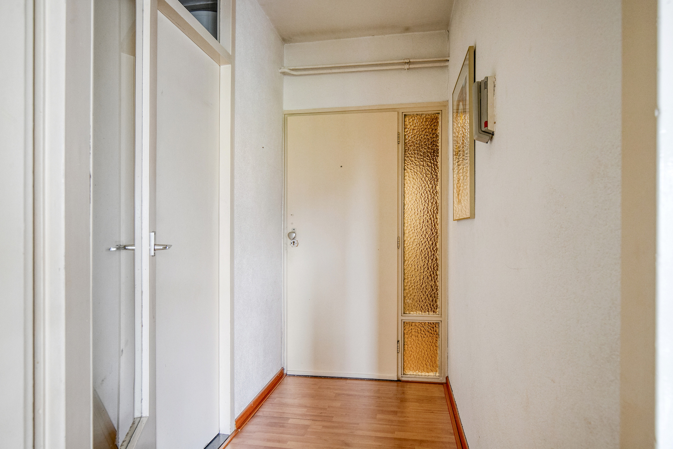 Entree van het appartement, hal, meterkast, badkamer voorzien van een ligbad, toilet, wastafel, boiler (huur) en de aansluiting voor de wasmachine. Halfopen keuken met 4-pitsgasfornuis, oven, vaatwasser, spoelbak en koel- vriescombinatie. Woonkamer veel lichtinval en toegang tot een ruim balkon.
